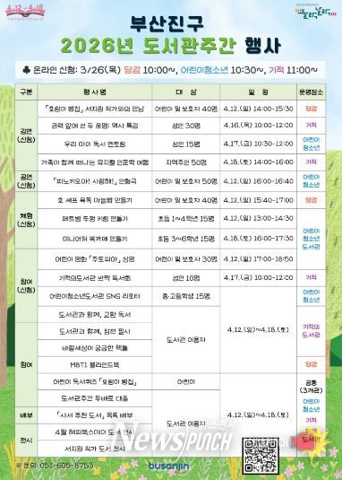 부산진구 관계자는 “구민들이 도서관주간 행사를 통해 즐겁게 도서관에 방문하고 일상 속 독서를 실천하는 계기가 되기를 바란다.”라고 전했다.