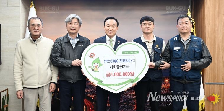 뉴스펀치 김윤걸 기자 | 엔브이에이치코리아(주)는 3월 24일 북구청장실에서 지역사회 나눔 실천을 위한 사회공헌기금 전달식을 가졌다. 이날 전달식에는 북구청장과 엔브이에이치코리아 임직원, 북구자원봉사센터 관계자 등이 참석한 가운데 사회공헌기금 500만원을 북구자원봉사센터에 전달했다.