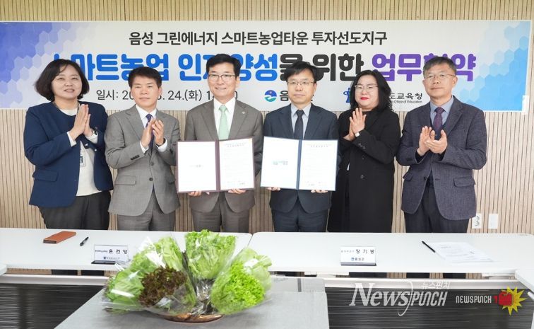 뉴스펀치 이현승 기자 | 음성군은 24일 H&A 스마트팜과 그린에너지 스마트농업타운 대상지 일원에서 충청북도교육청과 함께 지역 교육발전 방향과 미래 인재 양성 협력방안을 모색하기 위한 정책간담회를 열고 공동협약을 체결했다.