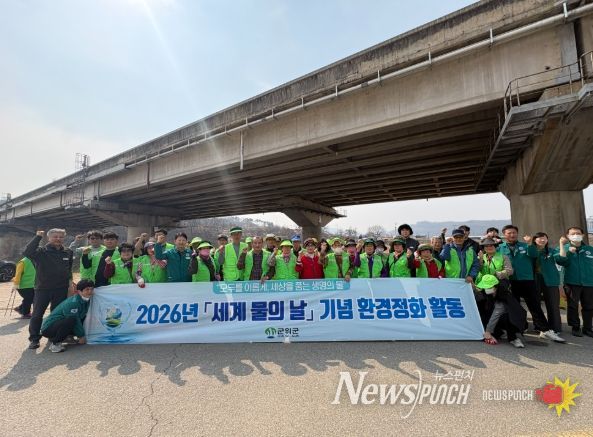 뉴스펀치 박세훈 기자 | 군위군은 24일 오후, ‘2026년 세계 물의 날’을 기념하여 군위생활체육공원 일원에서 대대적인 환경정화 활동을 실시했다고 밝혔다.
