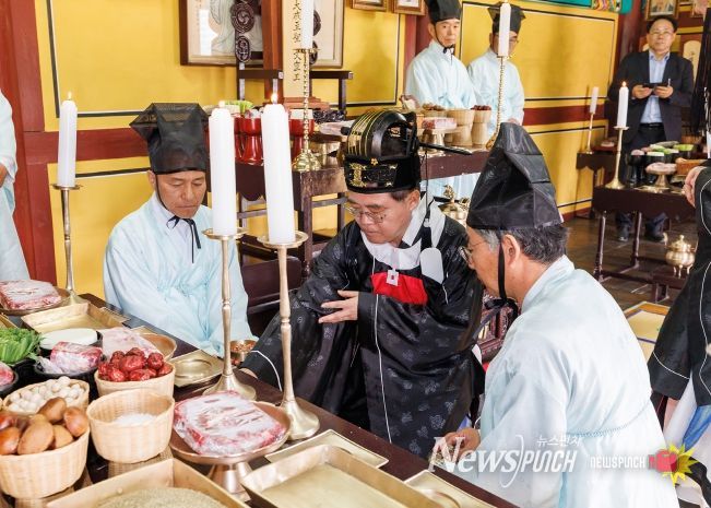뉴스펀치 박상훈 기자 | 진교훈 강서구청장이 24일 서울 유일의 향교인 양천향교 ‘춘기 석전제’에 초헌관으로 참여해 옛 성현들을 기리며 제례를 올렸다.