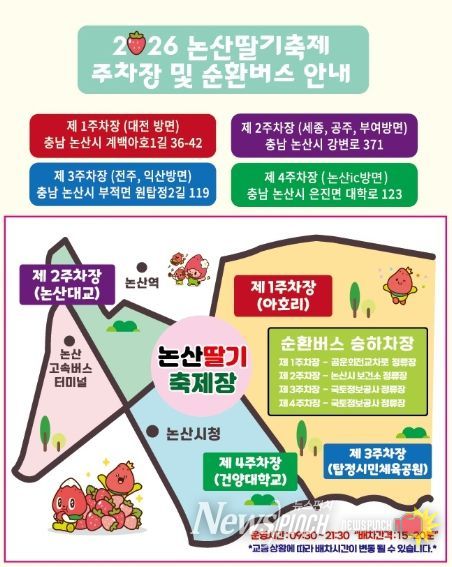 뉴스펀치 이현승 기자 | 세계딸기수도 논산에서 개최되는 ‘논산딸기축제’에 찾는 관광객들의 편의와 안전을 위해 논산시가 교통·주차는 물론 안전까지 아우르는 종합 대응체계를 마련했다.