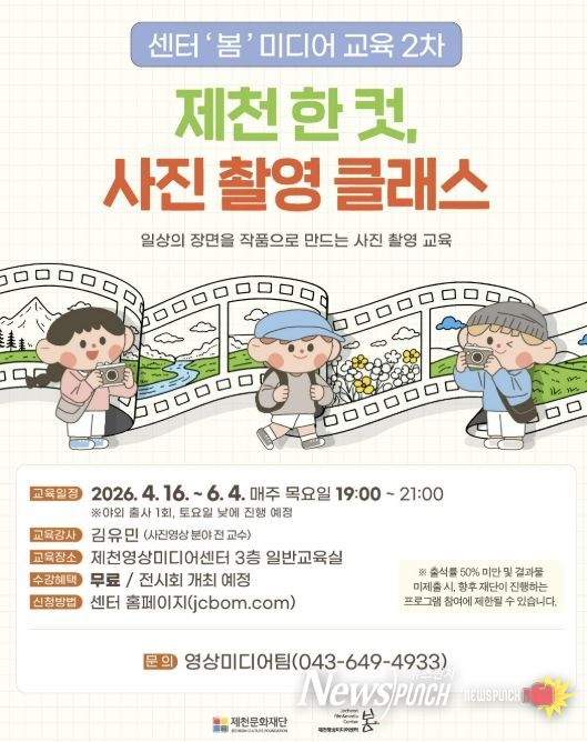 뉴스펀치 이현승 기자 | 제천문화재단이 오는 31일부터 사진 촬영 교육 ‘제천 한 컷, 사진 촬영 클래스’의 수강생을 모집한다.