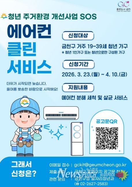 뉴스펀치 박상훈 기자 | 금천구는 여름철을 앞두고 청년가구의 쾌적한 생활환경 조성을 위해 ‘에어컨 클린서비스’ 사업을 추진한다고 밝혔다.