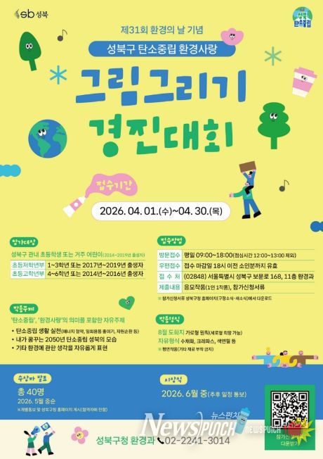 뉴스펀치 박상훈 기자 | 서울 성북구가 제31회 환경의 날(6월 5일)을 맞아 ‘2026년 성북구 탄소중립 환경사랑 그림그리기 경진대회’를 실시한다.
