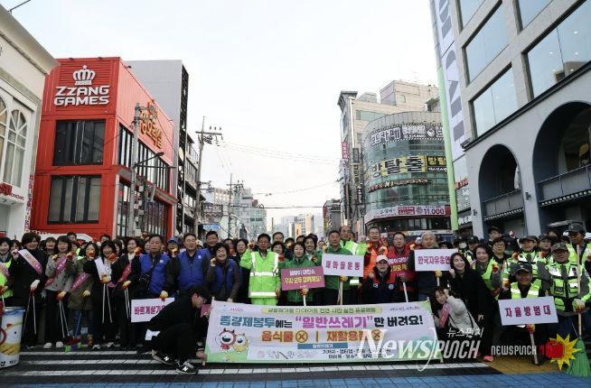 이날 레드로드에는 주민, 직능단체 등 250여 명이 함께 모여 겨울철 도로와 공공시설물 등에 쌓인 먼지와 오염물을 제거하고, 도로변 쓰레기 수거와 시설물 세척, 빗물받이 정비 등을 진행했다.