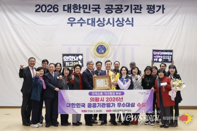 뉴스펀치 박상훈 기자 | 의왕시가 3월 24일 국회의원회관 대회의실에서 열린 ‘2026 대한민국 공공기관평가 우수대상’시상식에서‘정책소통·적극행정 부문’에 선정되는 영예를 안았다.