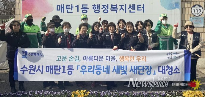 뉴스펀치 박상훈 기자 | 영통구 매탄1동 행정복지센터는 지난 24일, '우리동네 새빛 새단장' 사업의 일환으로, 새봄맞이 대청소 및 초화 식재 활동을 실시했다.