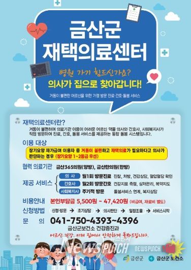 보건소 관계자는 “거동이 불편해 병원 이용이 어려운 어르신들이 집에서도 필요한 의료서비스를 받을 수 있도록 재택의료센터 프로그램을 진행할 것”이라며 “읍면 행정복지센터와 긴밀히 협력해 대상자를 적극 발굴함으로써 통합돌봄지원법 시행에 맞춰 지역 중심 돌봄체계를 안정적으로 운영해 나가겠다”고 말했다.