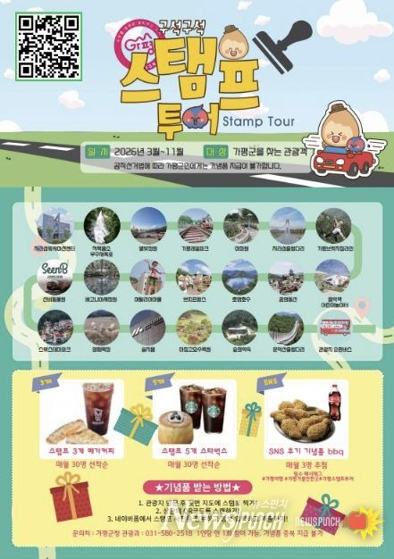 가평군은 이달 20일부터 11월 30일까지 관외 관광객을 대상으로 ‘2026년 가평 구석구석 스탬프투어’를 운영한다고 밝혔다.