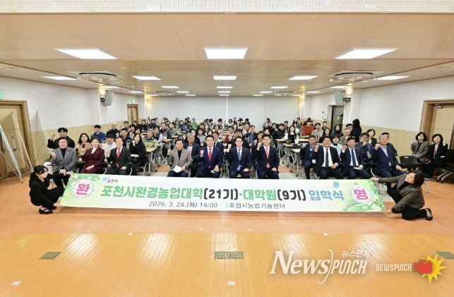 뉴스펀치 박상훈 기자 | 포천시는 지난 24일 포천시농업기술센터 대강당에서 신입생과 내빈 등 100여 명이 참석한 가운데 ‘2026학년도 포천시환경농업대학(22기) 및 대학원(9기) 입학식’을 개최했다.