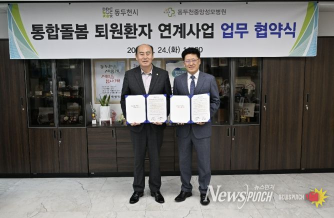뉴스펀치 박상훈 기자 | 동두천시는 지난 24일 동두천시청에서 동두천중앙성모병원과 ‘퇴원환자 지역사회 연계사업 업무협약’을 체결했다고 밝혔다.
