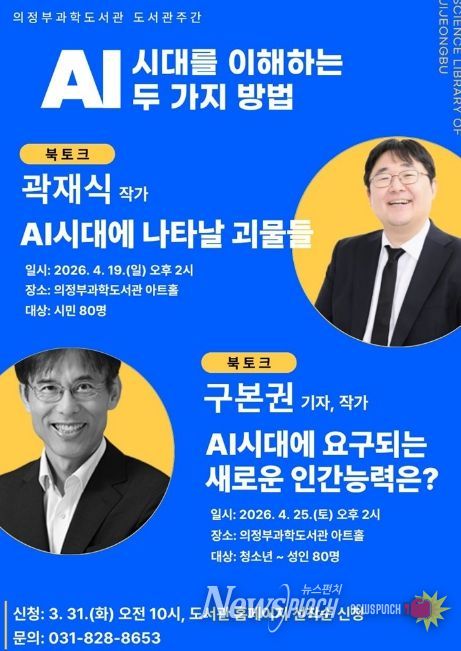 뉴스펀치 박상훈 기자 | 의정부과학도서관은 ‘제62회 도서관주간’과 ‘제4회 도서관의 날’을 맞아 4월 19일부터 30일까지 ‘AI 시대를 이해하는 두 가지 방법’을 주제로 시민 대상 작가 북토크를 개최한다.