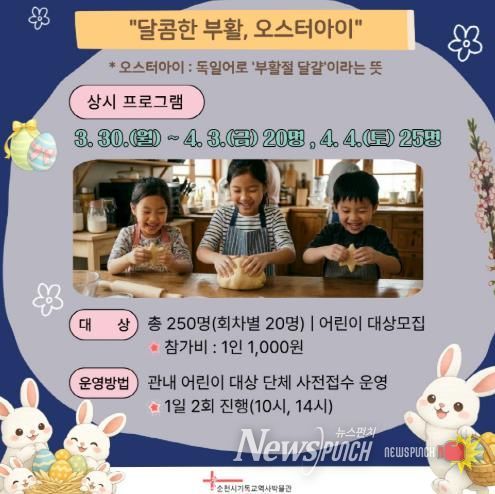 뉴스펀치 김용희 기자 | 순천시는 부활절을 맞아 오는 3월 30일부터 4월 4일까지 1주일간 기독교역사박물관에서 관람객을 위한 맞춤형 체험프로그램을 운영한다고 밝혔다.