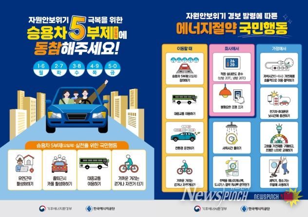 정부가 주도하는 공공기관 승용차 5부제는 이날부터 의무 시행된다. 중앙정부와 지방자치단체, 정부 산하 공공기관, 지자체 공공기관, 국공립대, 국립병원, 시도교육청 등이 대상이다.