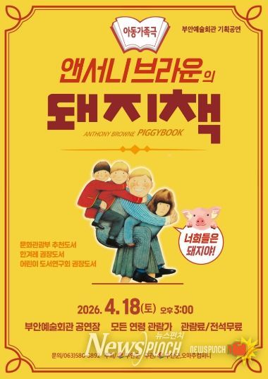 뉴스펀치 최영남 기자 | 부안군은 가족 뮤지컬 ‘돼지책’을 오는 4월 18일 오후 3시 부안예술회관 공연장에서 공연한다고 밝혔다.