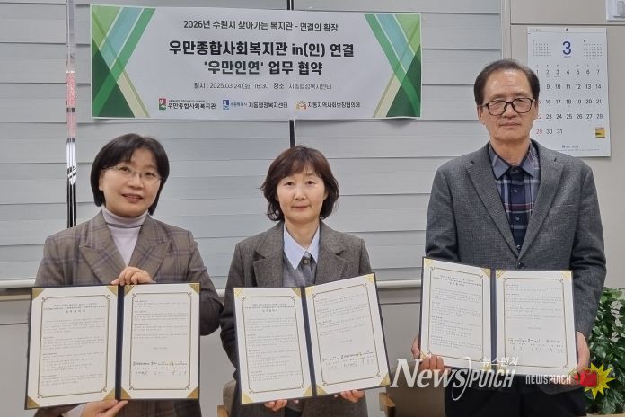 뉴스펀치 박상훈 기자 | 수원시 팔달구 지동은 지난 24일, 우만종합사회복지관, 지동 지역사회보장협의체와 함께 '2026년 수원시 찾아가는 복지관 사업' 추진을 위한 업무협약을 체결했다.