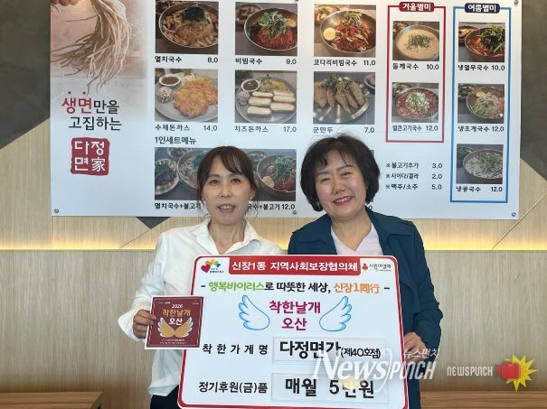 한편 신장1동은 착한가게 발굴을 지속적으로 확대하며 지역 내 나눔문화 확산과 촘촘한 돌봄체계 구축을 위한 다양한 복지사업을 이어갈 계획이다.