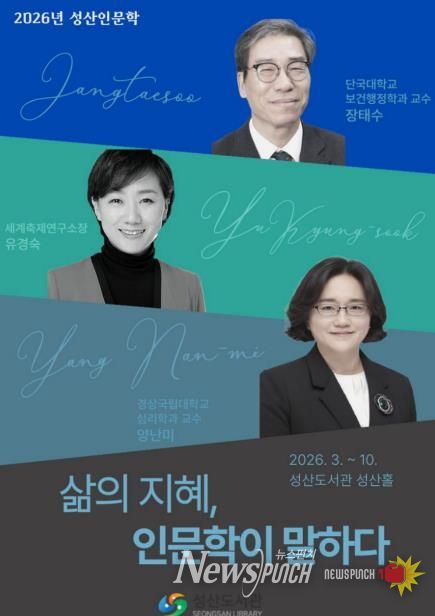 뉴스펀치 박세훈 기자 | 창원특례시 성산도서관은 시민의 인문 정신 함양과 지역의 인문 진흥을 위해 '삶의 지혜, 인문학이 말하다'라는 주제로 2026년 성산인문학을 운영한다.
