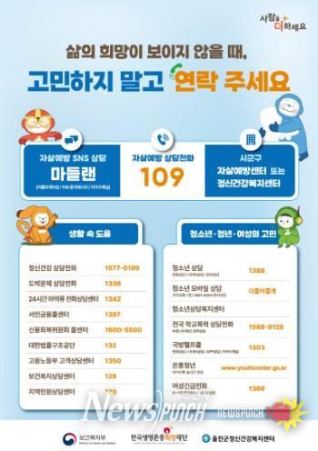 한편 우울감 등으로 전문가의 도움이 필요한 경우 자살예방상담전화 109 또는 정신건강위기 상담전화를 통해 24시간 상담을 받을 수 있다.