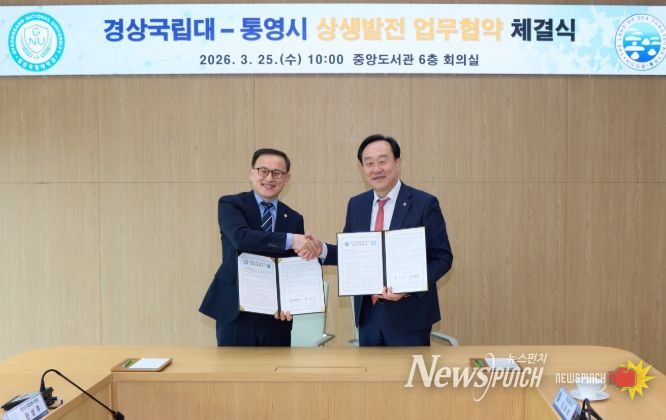 뉴스펀치 박세훈 기자 | 통영시는 경상국립대학교(총장 권진회)와 함께 지역 유일의 대학인 해양과학대학의 교육·연구 기반 강화와 운영 활성화를 위해 경상국립대학교 가좌캠퍼스 중앙도서관 6층 회의실에서 ‘통영시·경상국립대학교 상생발전을 위한 업무협약’을 25일 체결했다.