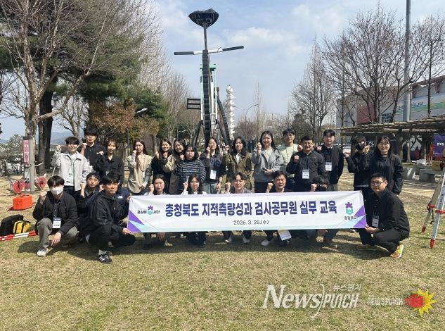 뉴스펀치 이현승 기자 | 충북도가 25일 청주체육관 일원에서 도내 시군 지적직 공무원 20여 명을 대상으로 ‘지적측량성과 검사 실무교육’을 진행했다.
