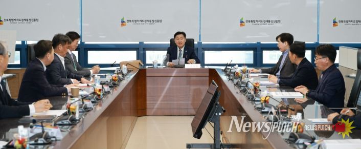 김 지사는 먼저 경제통상진흥원을 찾아 최근 중동 정세 장기화에 따른 유가 상승과 물가 불안 요인을 집중 점검했다. 또한 수출기업과 소상공인이 현장에서 겪는 애로사항을 청취하고, 급변하는 경제 환경에 선제적으로 대응할 수 있도록 맞춤형 지원 강화와 현장 밀착형 정책 추진을 당부했다.