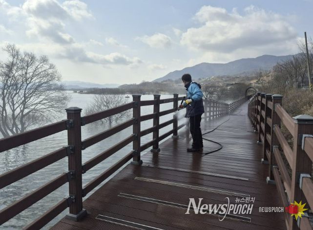 또한 겨울철 먼지와 오염으로 얼룩진 예당호 전망대 외벽을 세척하고 이용객 통행이 많은 느린호수길 데크 구간의 이물질을 제거하는 등 보행 환경 개선에도 힘썼다.