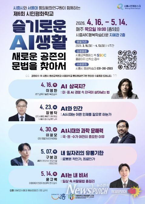 김상동 평생교육원장은 “인공지능이 일상의 문법을 바꾸고 있는 지금, 시민들이 막연한 두려움을 버리고 미래를 주도적으로 설계할 수 있도록 이번 프로그램을 준비했다”라며 “국내 최고 수준의 석학들과 소통하며 인공지능 시대의 새로운 평화와 공존의 길을 찾는 소중한 시간이 되길 바란다”라고 말했다.