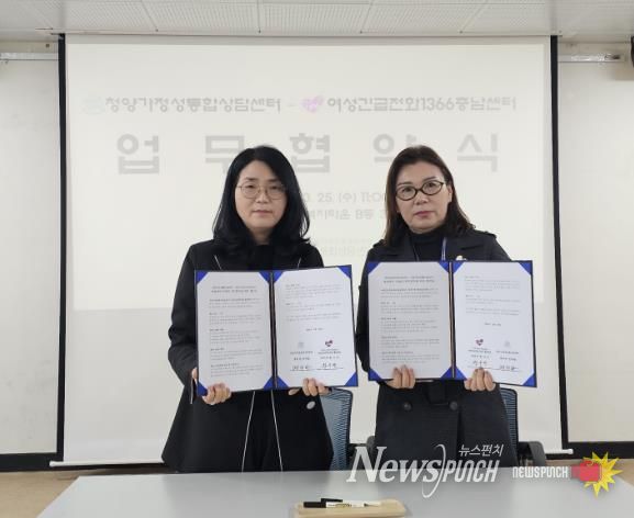 뉴스펀치 이현승 기자 | 청양가정성통합상담센터와 여성긴급전화 1366 충남센터가 지역 내 여성 폭력을 예방하고 피해자 지원 체계를 강화하기 위해 업무협약(MOU)을 체결했다.
