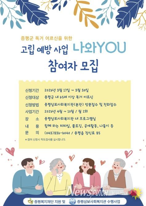 뉴스펀치 이현승 기자 | 증평삼보사회복지관은 증평복지재단의 지원으로 독거 어르신 고립 예방 사업 ‘나와YOU’를 본격 운영한다고 밝혔다.