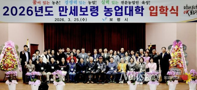 뉴스펀치 이현승 기자 | 보령시는 지난 25일 보령시농업기술센터 농업교육관에서 만세보령농업대학 입학생 58명이 참석한 가운데 2026년 만세보령농업대학 입학식을 개최했다.