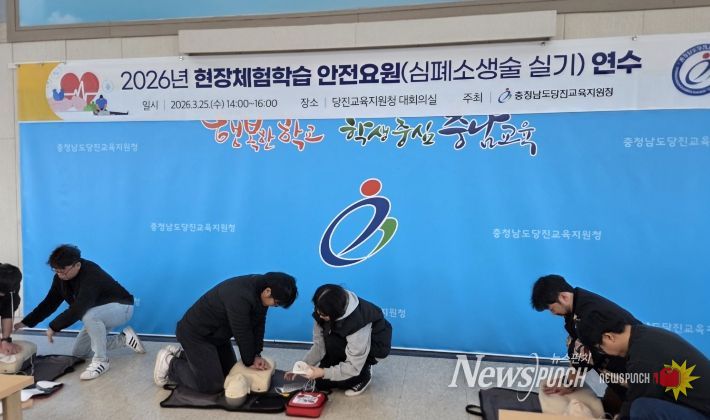 뉴스펀치 이현승 기자 | 당진교육지원청은 3월 25일 2026학년도 현장체험학습의 안전한 운영을 지원하기 위해 관내 초·중·고·특수학교 교직원을 대상으로 ‘2026 현장체험학습 안전요원(심폐소생술) 연수’를 운영했다.