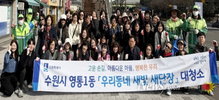 뉴스펀치 박상훈 기자 | 영통구 영통1동 행정복지센터는 지난 3월 25일 새봄을 맞아 쾌적한 도시환경 조성을 위한 ‘새봄맞이 일제 대청소’를 실시했다.