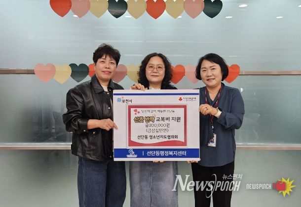 뉴스펀치 박상훈 기자 | 포천시 선단동청소년지도협의회는 지난 25일 지역 내 취약계층 청소년의 새 학기 교복비를 지원하며 따뜻한 나눔을 실천했다.