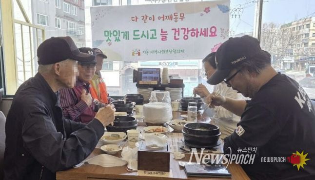 뉴스펀치 박상훈 기자 | 수원시 팔달구 지동 지역사회보장협의체는 지난 25일 홀몸 어르신들을 위한 ‘다 같이 어깨동무’ 특화사업을 운영했다. ‘다 같이 어깨동무’는 2024년부터 추진 중인 지동 지역사회보장협의체의 대표 사업으로, 분기마다 비슷한 연령대의 홀몸 어르신 3명과 협의체 위원 2명이 함께 식사를 하며 정서적 교류와 사회적 관계 형성을 지원하고 있다.