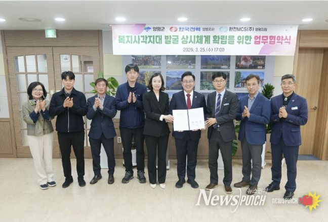 뉴스펀치 박상훈 기자 | 양평군은 지난 25일 한국전력공사 양평지사 및 한전MCS(주) 양평지점과 복지사각지대 상시 발굴 체계 구축을 위한 업무협약을 체결했다고 밝혔다.