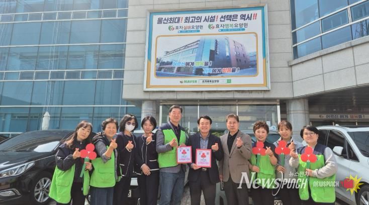 뉴스펀치 김윤걸 기자 | 울주군 범서읍 지역사회보장협의체가 26일 범서읍 신규 착한기업 ㈜화수목과 착한가게 효자행복요양원을 방문해 현판 전달식을 가졌다.