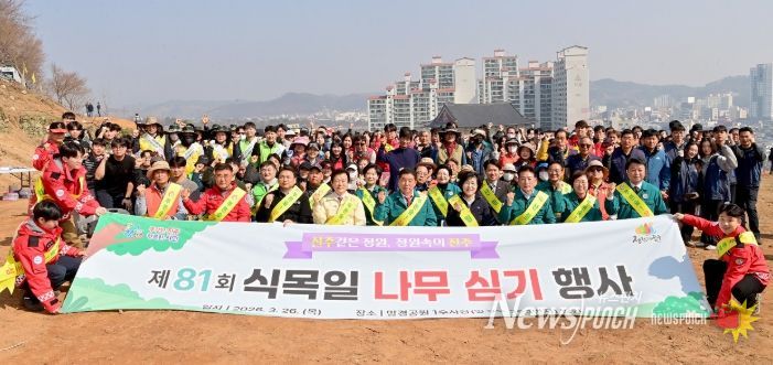 뉴스펀치 박세훈 기자 | 진주시는 26일 식목일을 맞아 망진산 일원에서 ‘제81회 식목일 나무 심기 행사’를 개최했다.