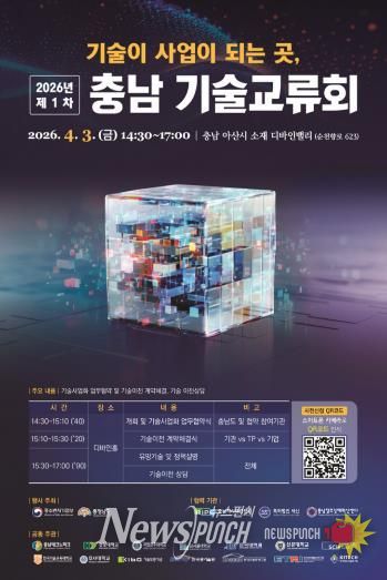 뉴스펀치 이현승 기자 | (재)충남테크노파크는 오는 4월 3일 충남 아산시 디바인밸리에서 산·학·연 협력 기반의 기술사업화 촉진을 위한 ‘2026년 제1차 충남 기술교류회’를 개최한다고 밝혔다.