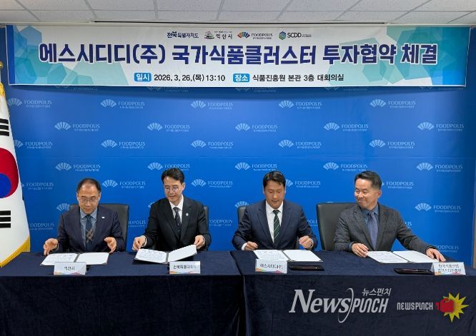 익산시는 26일 국가식품클러스터 입주기업 '에스시디디㈜(대표 강병수)'와 국가식품클러스터 내 제3공장 건립을 위한 투자협약을 체결했다.