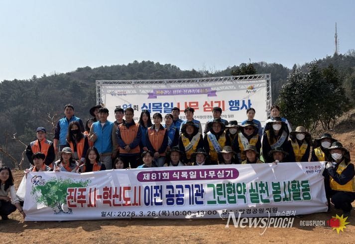뉴스펀치 박세훈 기자 | 진주시는 26일 망경공원 일원에서 혁신도시 이전 공공기관 임직원들과 함께 ‘2026년 제1회 그린 협약 실천 봉사활동’을 펼쳤다.