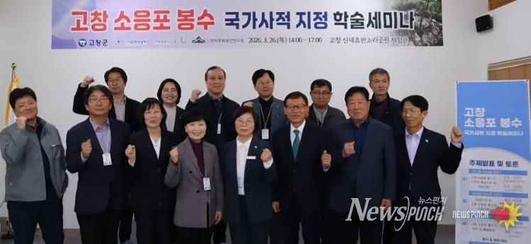 뉴스펀치 정홍균 기자 | 고창군이 ‘고창 소응포 봉수(高敞 所應浦 烽燧)’의 역사적 가치를 조명하고 국가사적 지정을 추진하기 위한 학술세미나를 26일 고창신재효판소리공원 체험관에서 개최했다.