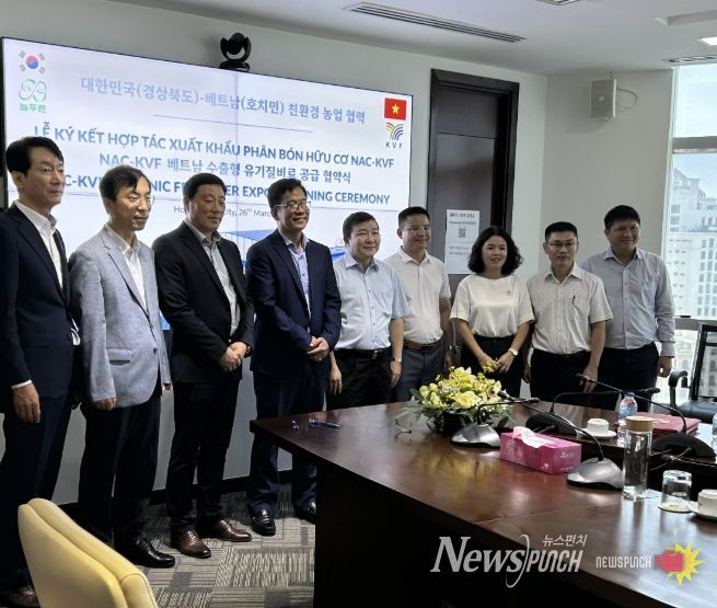 뉴스펀치 박세훈 기자 | 봉화군은 농업회사법인 늘푸른(주)와 협력하여 지난 3월 26일, 베트남 국영기업 KVF와 ‘K-축분유기질비료’수출 공급계약을 공식 체결했다고 밝혔다.