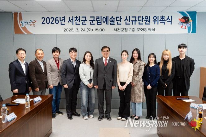 뉴스펀치 이현승 기자 | 서천군은 지역 문화예술 진흥과 군민의 문화 향유 기회 확대를 위해 지난 24일 서천군청 2층 문화강좌실에서 군립예술단 단원과 관계자 등이 참석한 가운데 2026년 군립예술단 신규단원 위촉식을 개최했다.