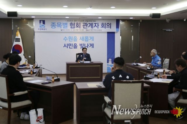 뉴스펀치 박상훈 기자 | 수원시 장안구는 지난 26일, 구청 상황실에서 ‘2026년 장안구청장배 생활체육대회’의 성공적 개최를 위한 종목별 협회 관계자 회의를 개최했다.