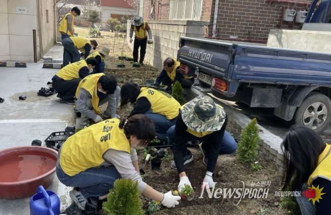 뉴스펀치 박상훈 기자 | 수원시 장안구 새마을지도자영화동협의회는 지난 26일, 관내 손바닥 정원 중 하나인 ‘별무리 정원’에서 새봄맞이 환경정비와 꽃 심기 활동을 진행햇다.