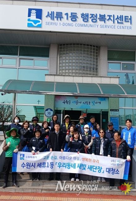 뉴스펀치 박상훈 기자 | 수원시 권선구 세류1동은 지난 26일 깨끗하고 쾌적한 마을환경을 조성하기 위하여 ‘새봄맞이 대청소’를 실시했다.