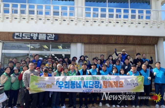 뉴스펀치 김용희 기자 | 진도군은 최근, ‘군민 중심의 생활환경 가꾸기 운동’의 하나로 군민, 기관사회단체, 공무원 약 500명이 참여하는 ‘우리동네 새 단장’을 진행했다.