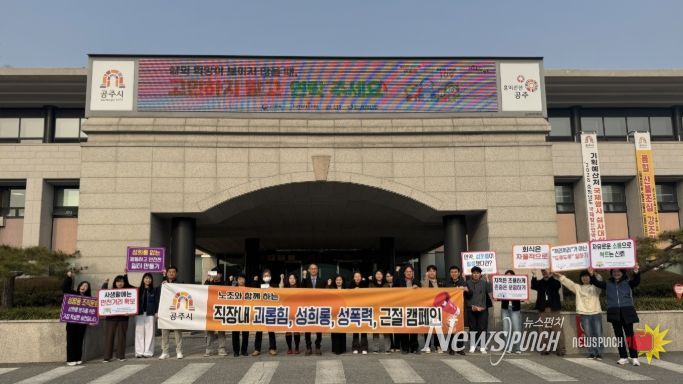 뉴스펀치 이현승 기자 | 공주시는 27일 시청 본관 로비에서 공주시청 공무원노동조합과 공무직노동조합과 함께 ‘2026년 직장 내 폭력 예방 캠페인’을 실시했다.